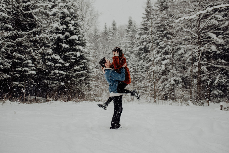 Na sesję spotkaliśmy się o poranku, padał dość gęsty śnieg, wszystko dookoła wyglądało pięknie. Justyna i Szymon nieco zmarzli ale jak mówili, bawili się świetnie!